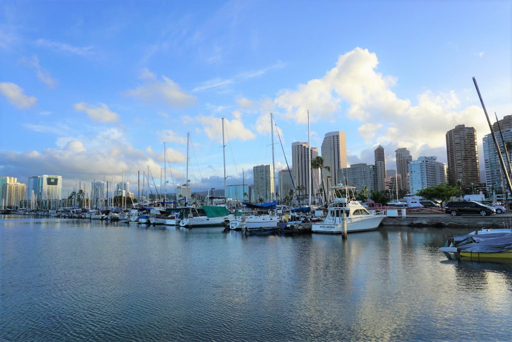 ショップからアラモアナブルーバードをまっすぐ海方面に進み、グランドワイキキアンとイリカイホテルの間を抜け右手にヨットハーバー、左手に駐車場のある小さな浜辺から水入りできます。